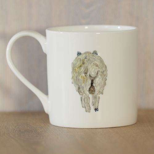 All the Cotswold sheep have a backside on the back side of the mug. Most of the mugs assume that the right hand is used to pick up the mug and you would like to look at the picture as you drink.  If you would like a lefthanded mug please email me and I will create it for you. You will need to allow at least one week for the mug to be completed.