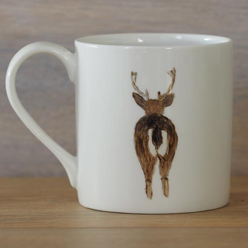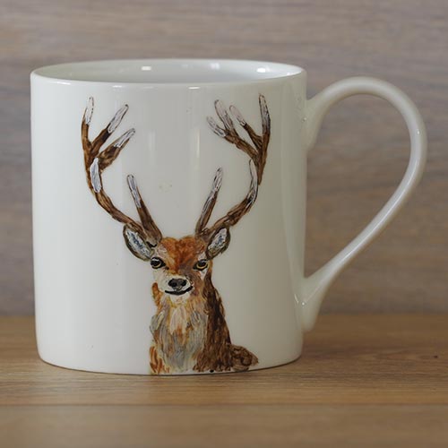 All the Exmoor stags have a stags’ bottom on the back side of the mug. It’s a young stag with much small antlers I have assumed that mostly the right hand is used to pick up the mug and you would like to look at the picture as you drink.  If you would like a lefthanded mug please email me and I will create it for you. You will need to allow at least one week for the mug to be completed.